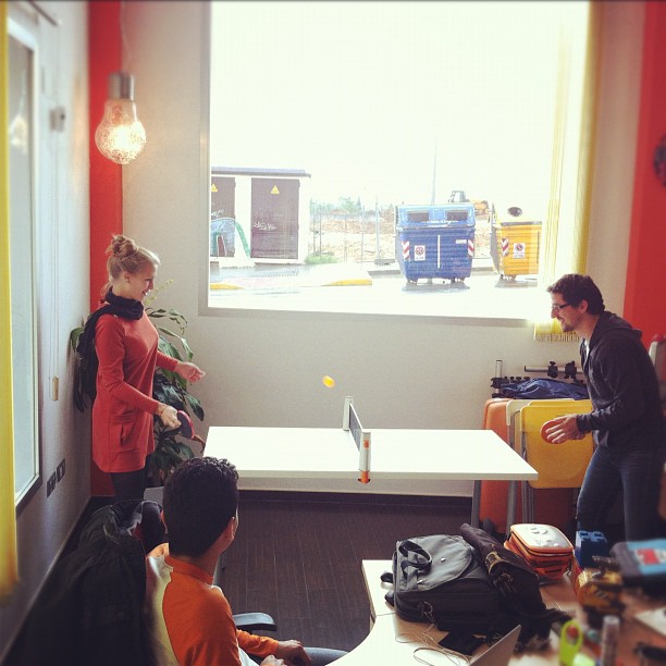 @mplisky vs @ruizgijon. Comer no comemos pero en ping pong estamos para la olimpiada… #moodyodev